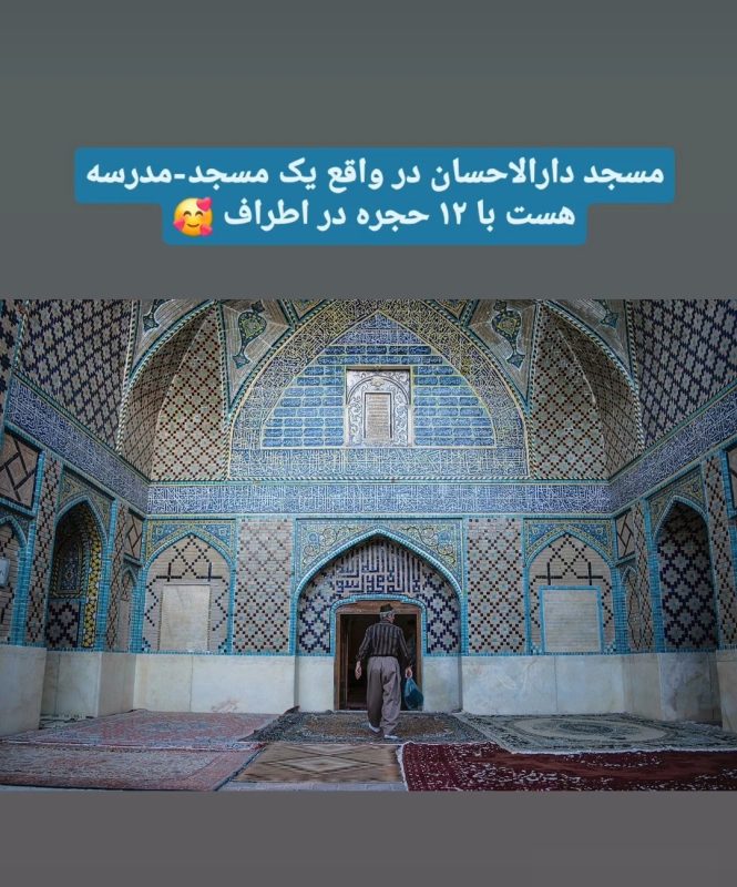 تمامی تصاویر از مجموعه عکس های مسجد دارالاحسان سنندج از خبرگزاری ایسنا، ویکی مدیا و تصاویر بازدیدکنندگان اینستاگرام با ذکر نام آنها به جهت رعایت حقوق معنوی اثر استفاده شده است. در انتهای متن لینک صفحات شخصی تمام عکاسان عزیز قابل دسترس می باشد.